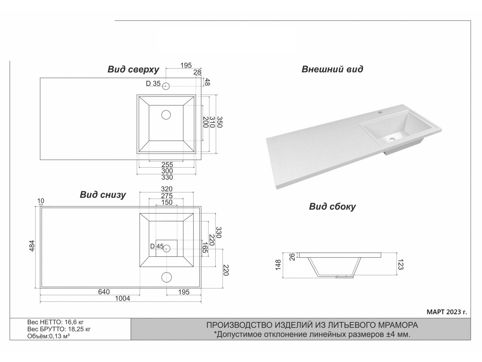 - Тумба Куба Риф 57 подвесная 2 ящика раковина под Marshall 120 правая