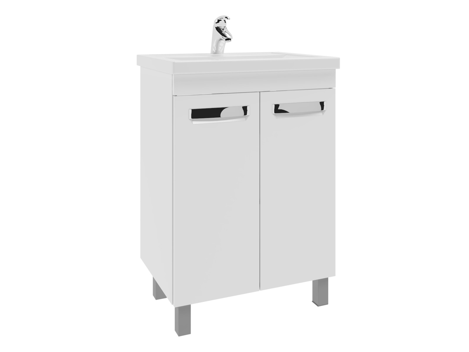Оснащение: 2 дверцы; 1 полка ЛДСП; ручка врезная металлическая хромированная, опоры квадратные регулируемые.