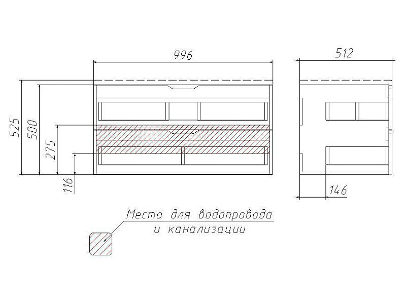 - Тумба подвесная под умывальник "Stella 100" 3D В2 996x525x512 - 18180 руб