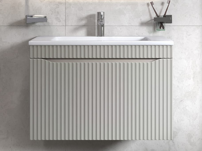 Материалы тумбы: влагостойкая МДФ, полимерное покрытие ПВХ, внутренние элементы из ЛДСП, европейская фурнитура