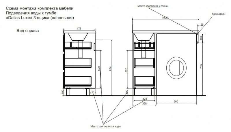 - Тумба с раковиной Dallas Luxe 1000 напольная 3 ящика левая