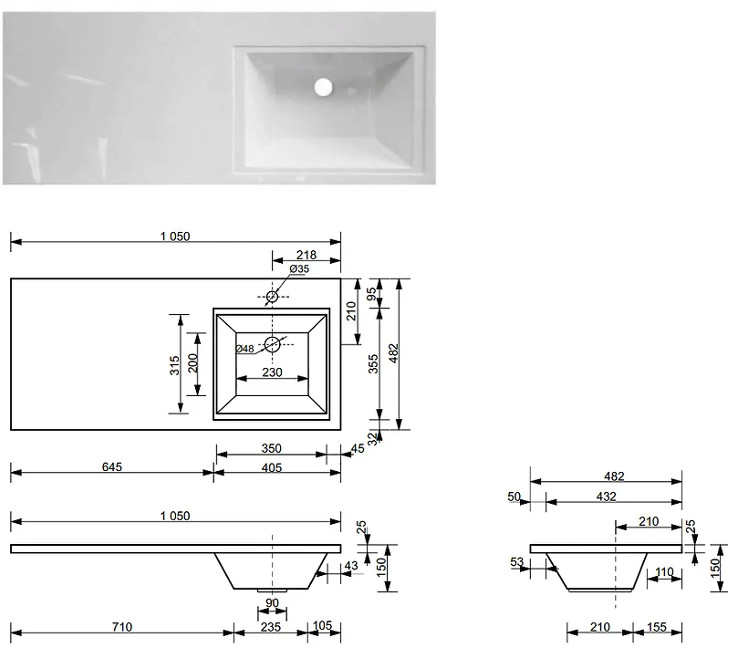 - Тумба с раковиной Dallas Luxe 1050 навесная 2 ящика правая