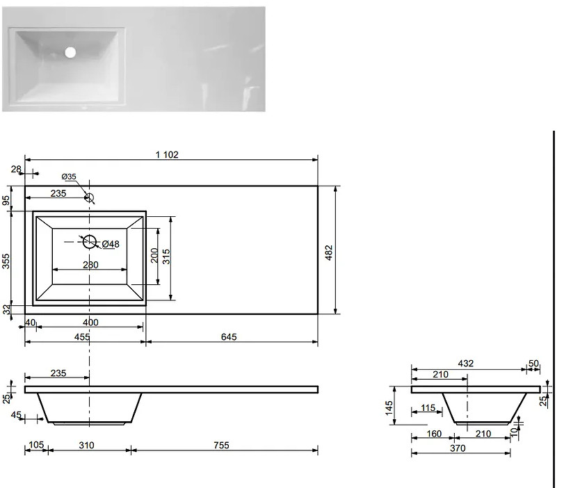 - Тумба с раковиной Dallas Luxe 1100 навесная 1 ящик левая