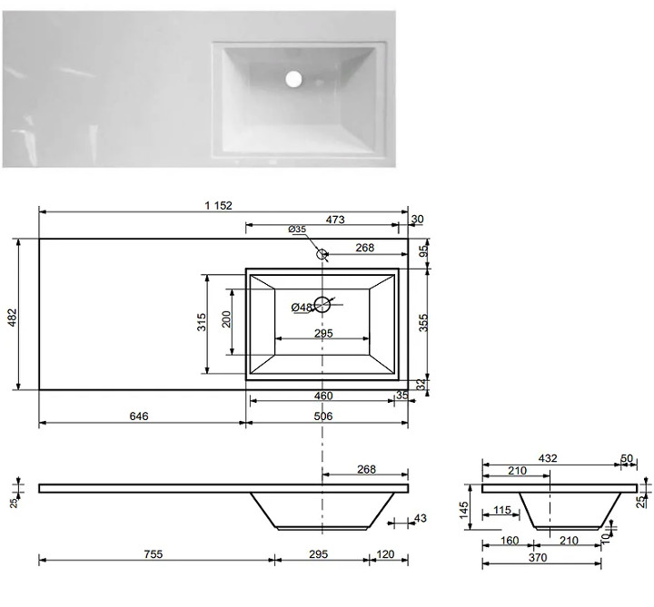 - Тумба с раковиной Dallas Luxe 1150 навесная 1 ящик правая