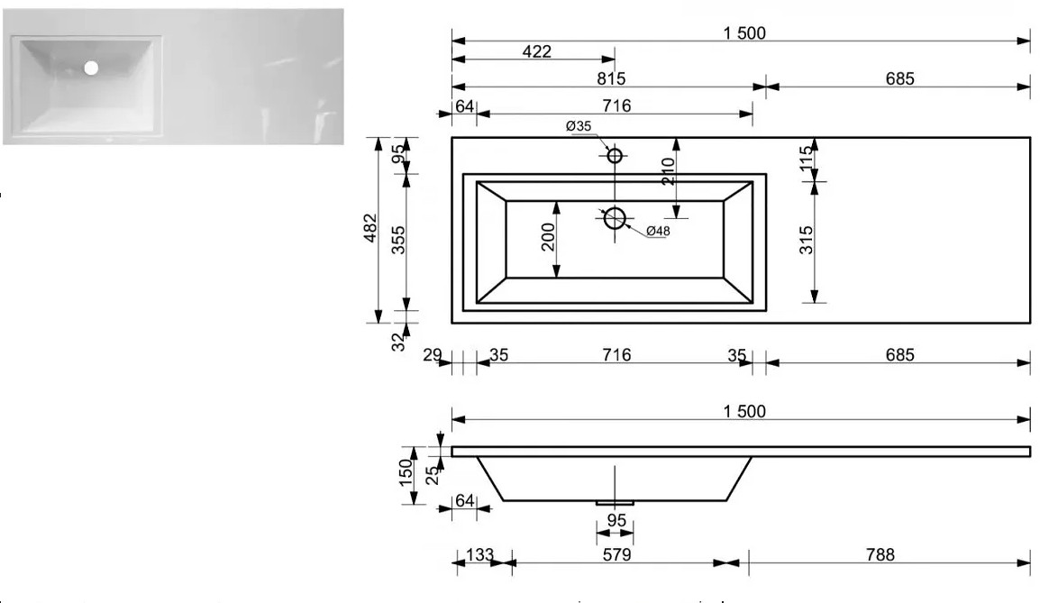 - Тумба с раковиной Dallas Luxe 1500 напольная 2 ящика левая