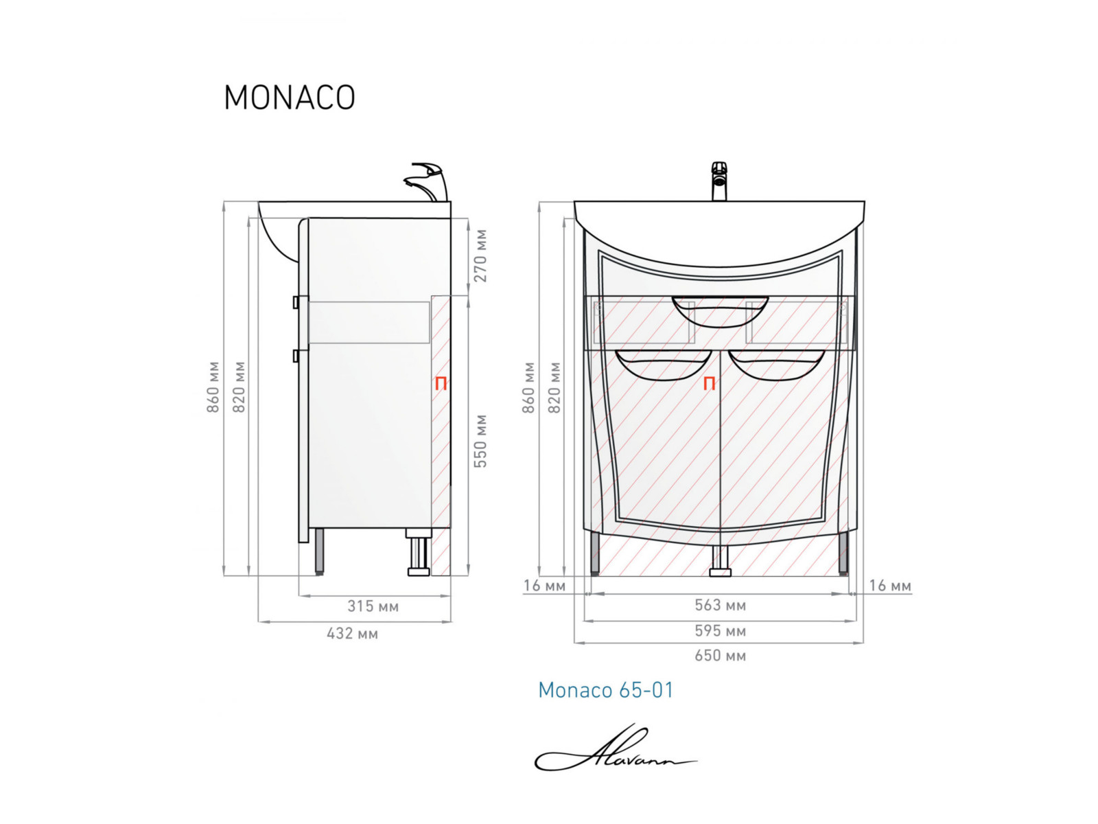 - Тумба с раковиной Monaco 65 белая