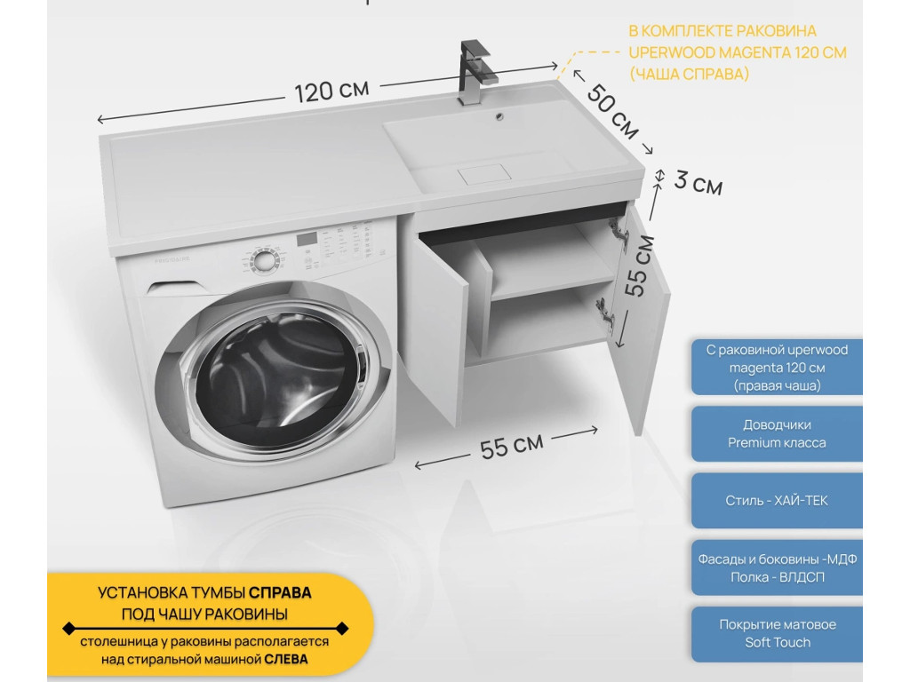 - Тумба с раковиной Uperwood Magenta 60-120 см подвесная белая с дверцами правая