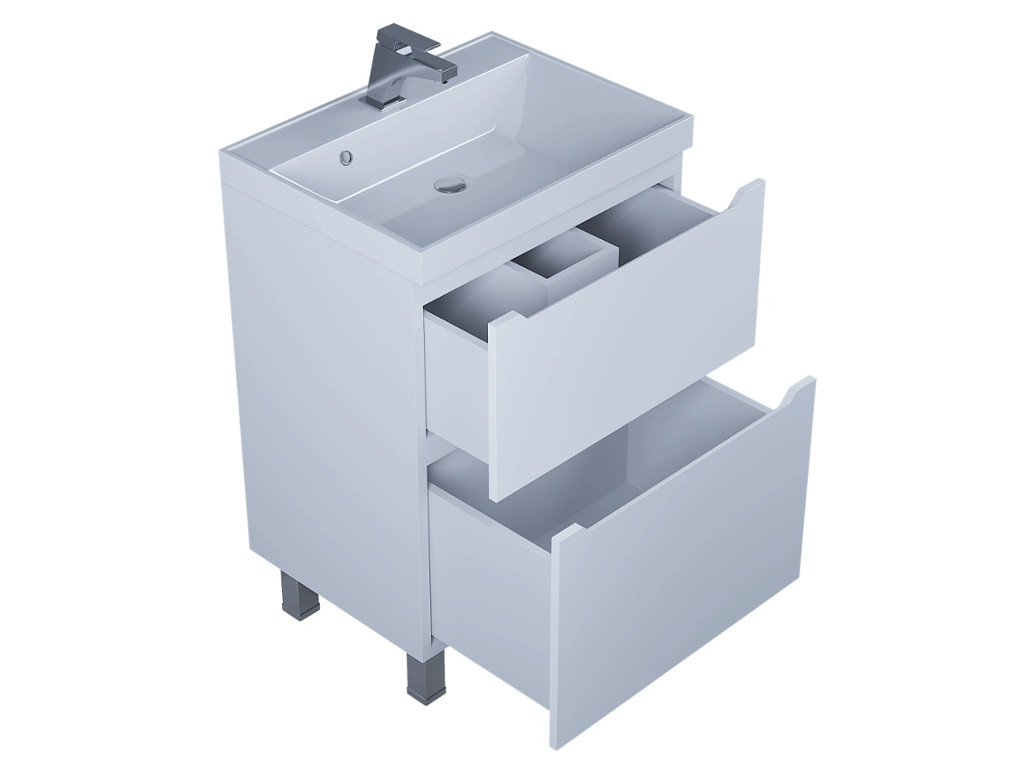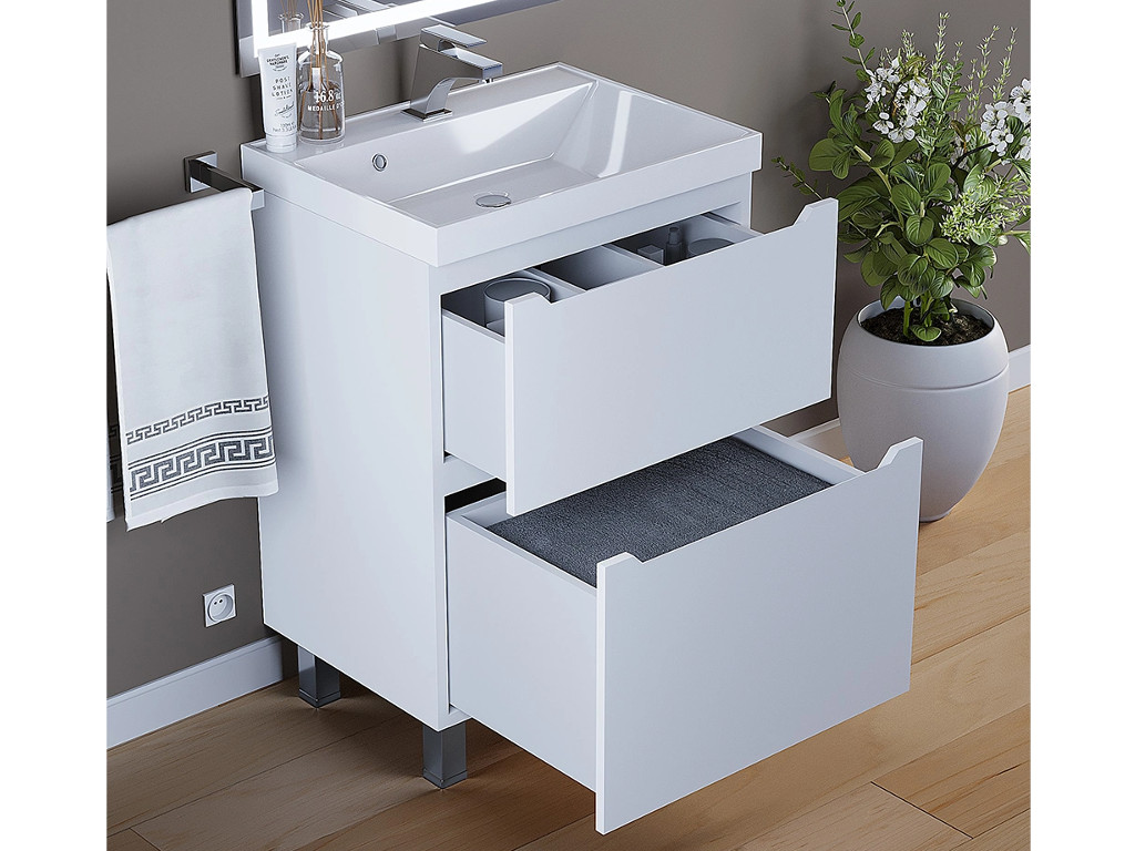 - Тумба с раковиной Uperwood Tanos 2 ящика напольная 60 см белая