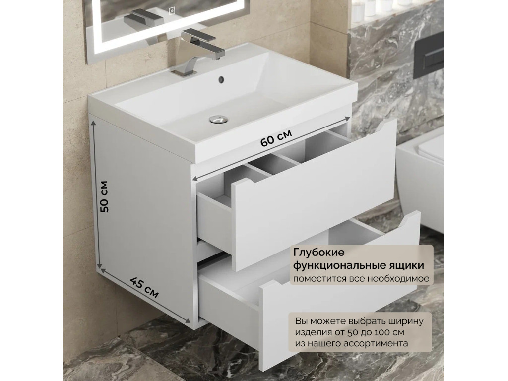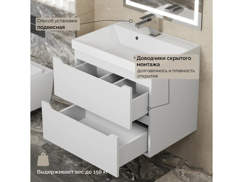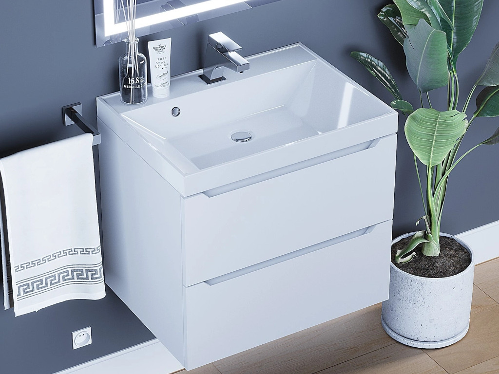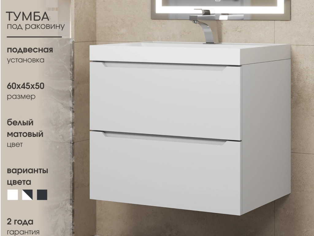 - Тумба с раковиной Uperwood Tanos матовая белая 60 см