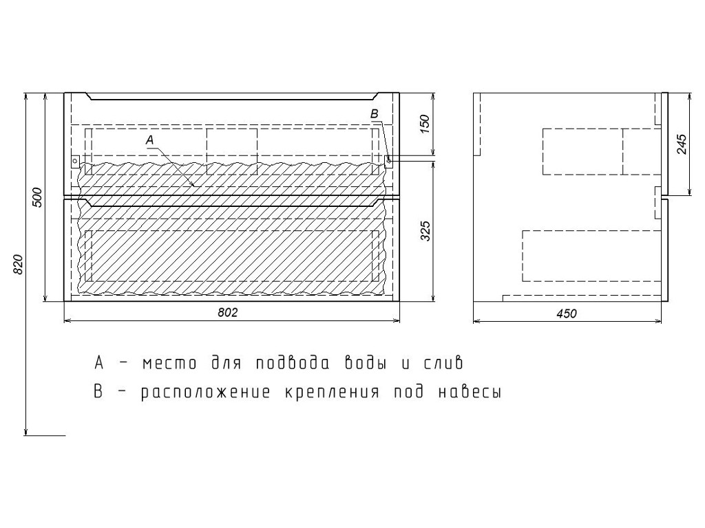 - Тумба с раковиной Uperwood Tanos матовая черная 80 см