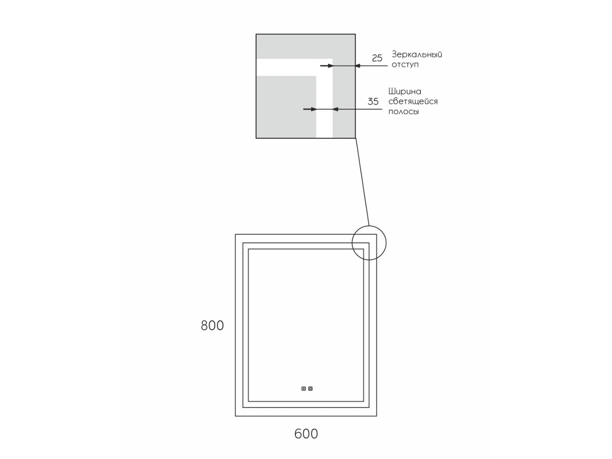 Модель оснащена встроенной LED-подсветкой, сенсорным выключателем с диммером, который позволяет включить и отрегулировать яркость подсветки в одно касание.