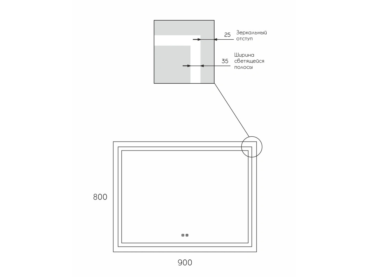Модель оснащена встроенной LED-подсветкой, сенсорным выключателем с диммером, который позволяет включить и отрегулировать яркость подсветки в одно касание.
