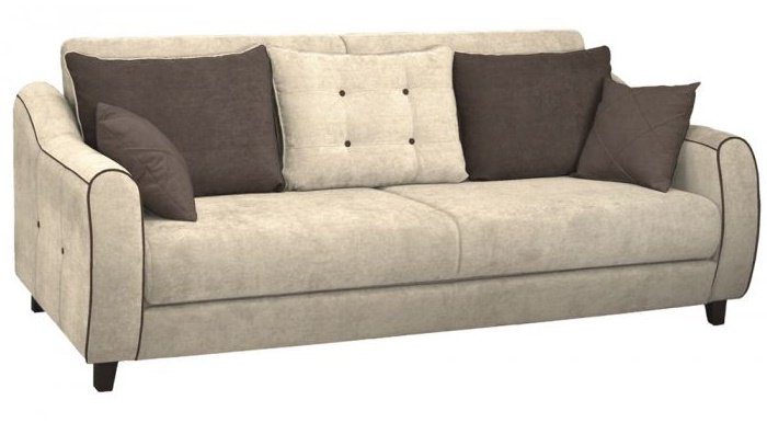 Каркас дивана выполнен из ЛДСП, фанеры, хвойного и березового бруса. Элементы сиденья и спальная часть из ППУ. Наполнитель подушек – полиэфирное волокно и крошка ППУ. Опоры - пластик.