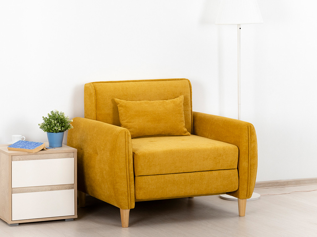 Декор: Мягкая спинка с имитацией приспинных подушек. Утяжки на передней и задней стороне спинки, на сиденье и подлокотниках.