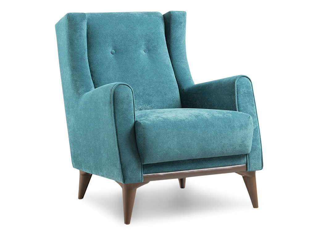 Декор: Декоративный кант из основной ткани по переднему торцу подлокотника; Утяжка спинки на 2 декоративные пуговицы из основного материала; Декоративный элемент царги из материала-компаньона.