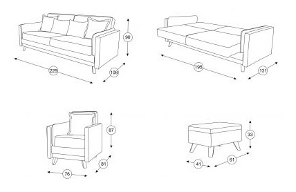 Характеристика: Каркас выполнен из ЛДСП, ДСП, фанеры, хвойного и березового бруса. Элементы сиденья и спальная часть выполнены из ППУ и блока плоских пружин «змейка». Наполнитель подушек – полиэфирное волокно. Опоры – пластмасса.