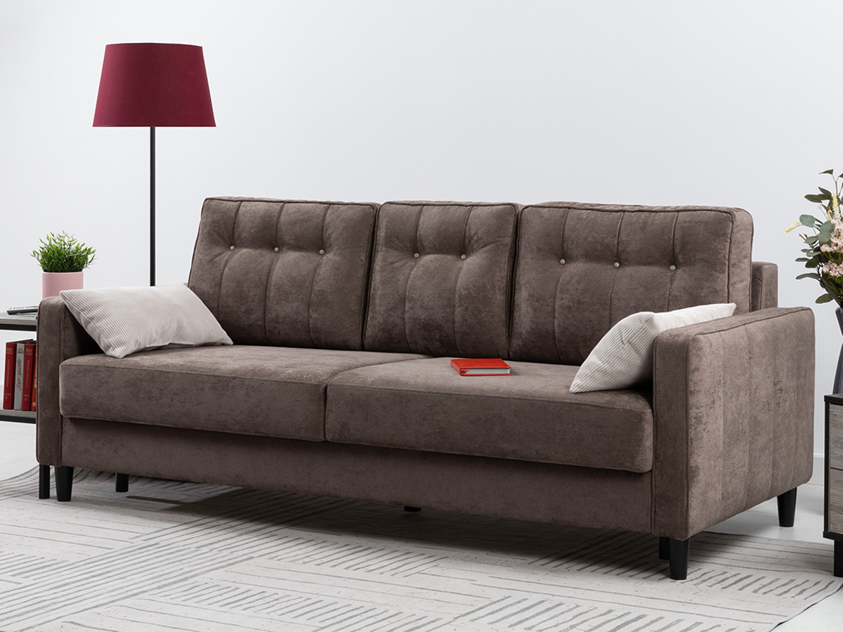 Подушки имеют трапециевидную форму, с утолщением к низу для комфорта посадки. Кант по всему периметру подушек, декоративные утяжки металлическими пуговицами, вертикальная стежка.