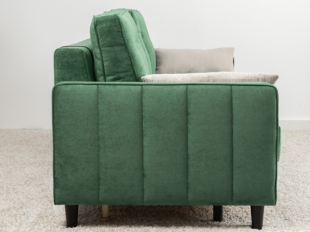 Подушки имеют трапециевидную форму, с утолщением к низу для комфорта посадки. Кант по всему периметру подушек, декоративные утяжки металлическими пуговицами, вертикальная стежка.