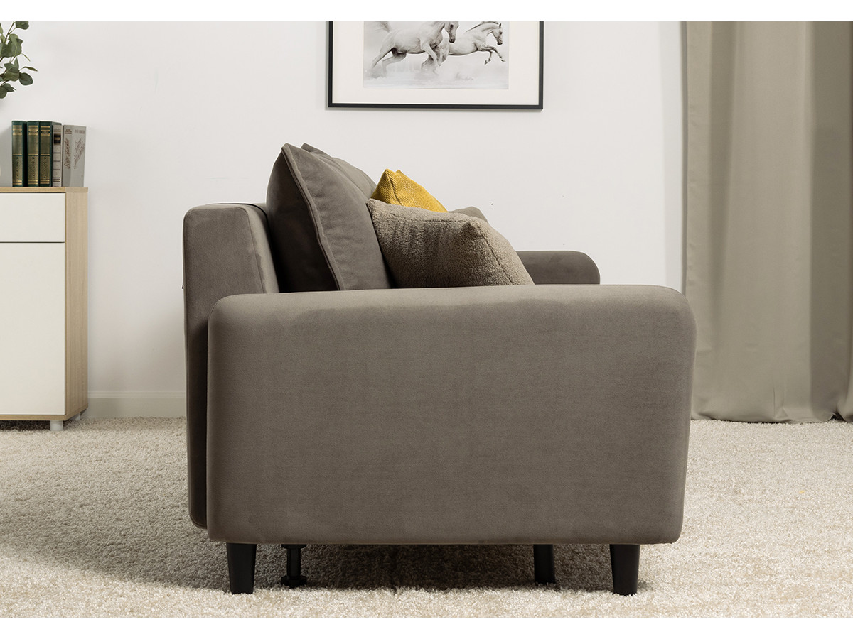 Декор: В комплекте 2 двусторонние декоративные подушки и 2 декоративные думки. Задняя спинка в ткани основы. Декоративные отделочные строчки по боковинам и сиденью
