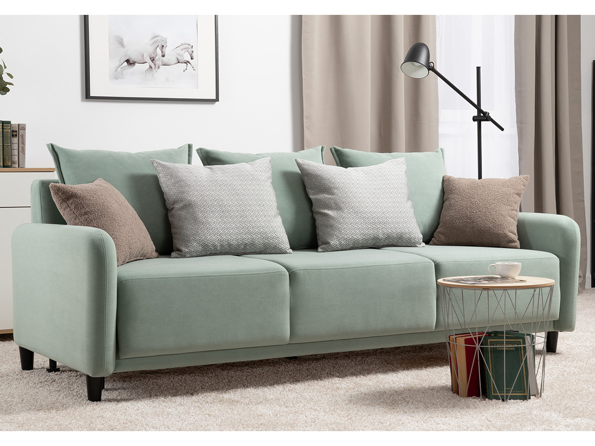 Декор: В комплекте 2 двусторонние декоративные подушки и 2 декоративные думки. Задняя спинка в ткани основы. Декоративные отделочные строчки по боковинам и сиденью