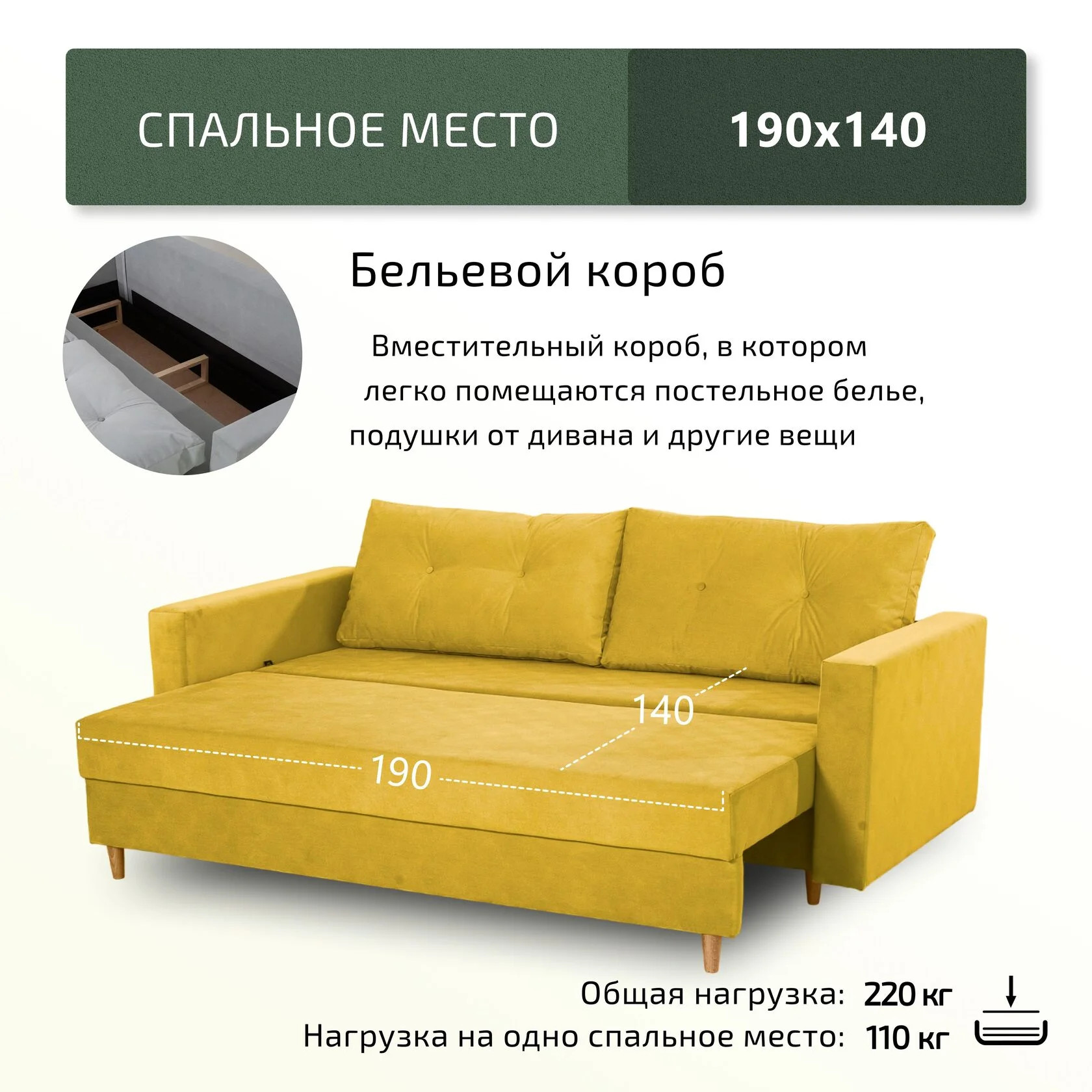 Спальное место, мм: 1450х1900 мм