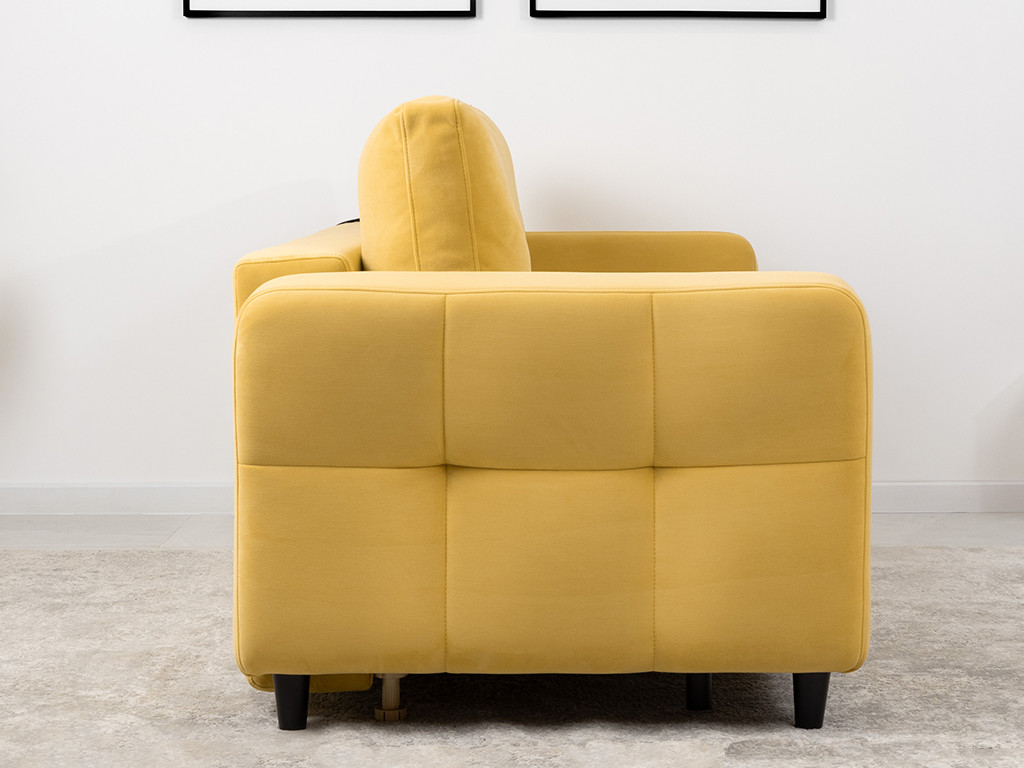 Ровная отстрочка по всему периметру сидения и стежка? создающая эффект пышности выделенных форм. Подлокотники прямые с изгибом в наружные стороны, с выраженной стежкой по лицевой стороне. Стежка на посадочной части дивана.