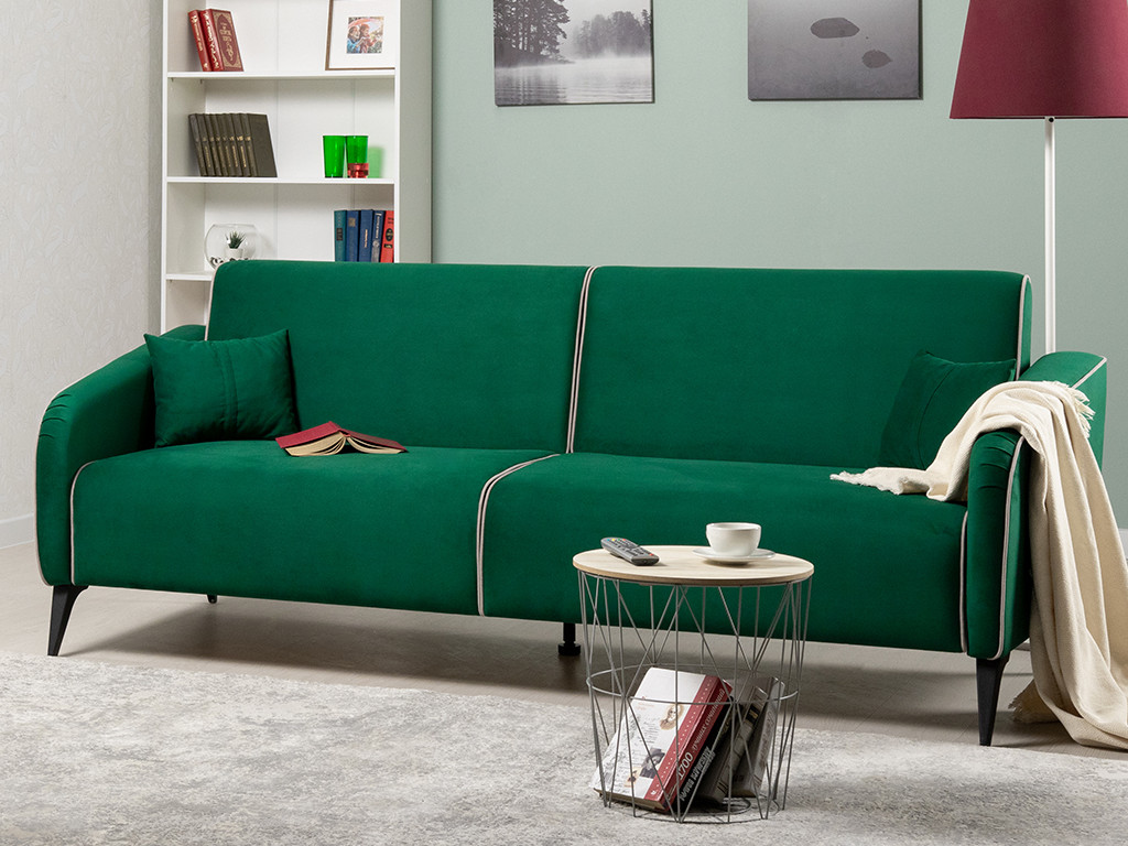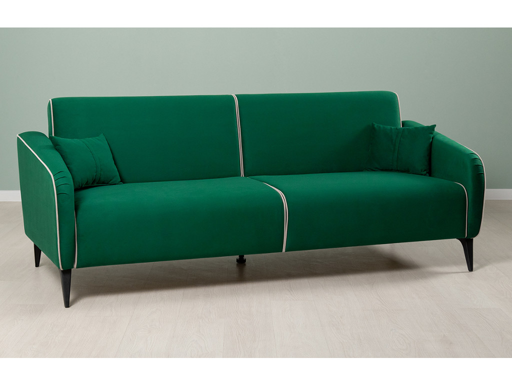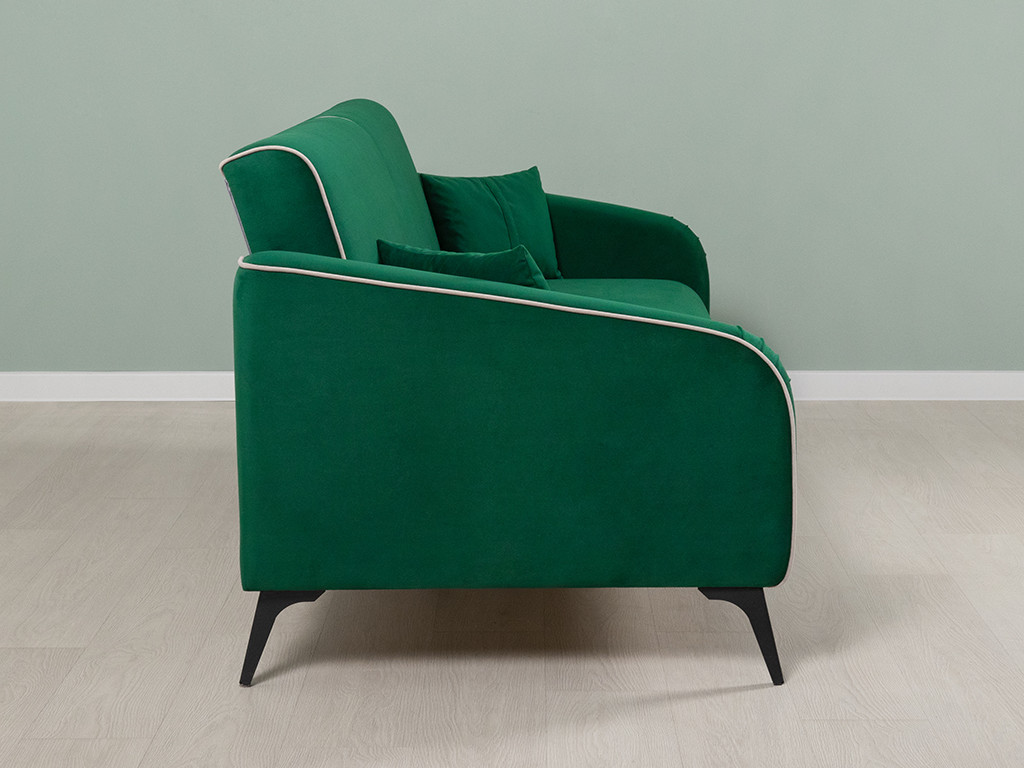 Декор: Спинка и сиденье разделяются пополам двойным кантом по центру и одинарным по краям сидения, для придания одной единой формы. Подлокотники с изгибом на лицевой стороне и мягкими закругленным углом со складками, с выраженным контрастным ровным кантом по внешнему контуру изделия и изогнутой линией канта.