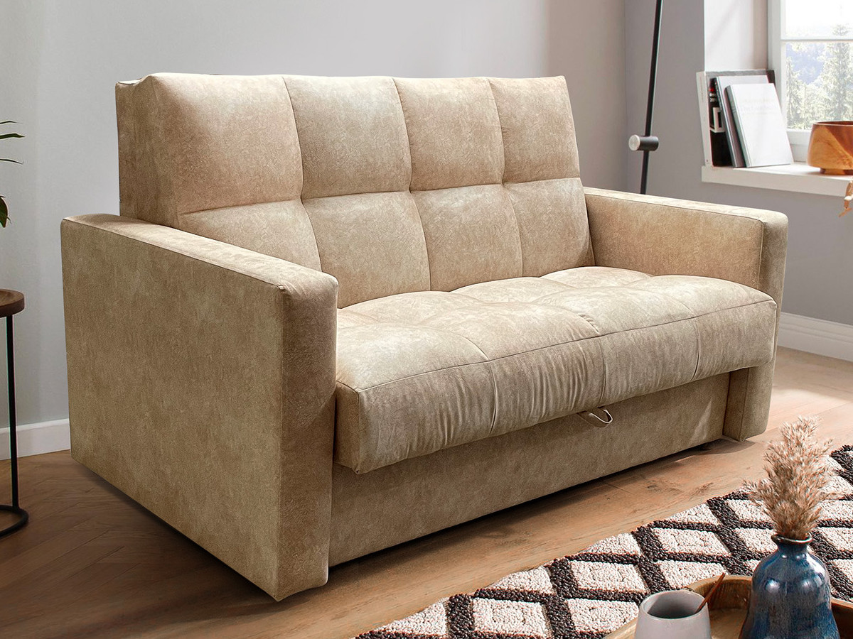 Диван Рэй Клетка 1800х2000 с прямыми подлокотниками бежевый велюр