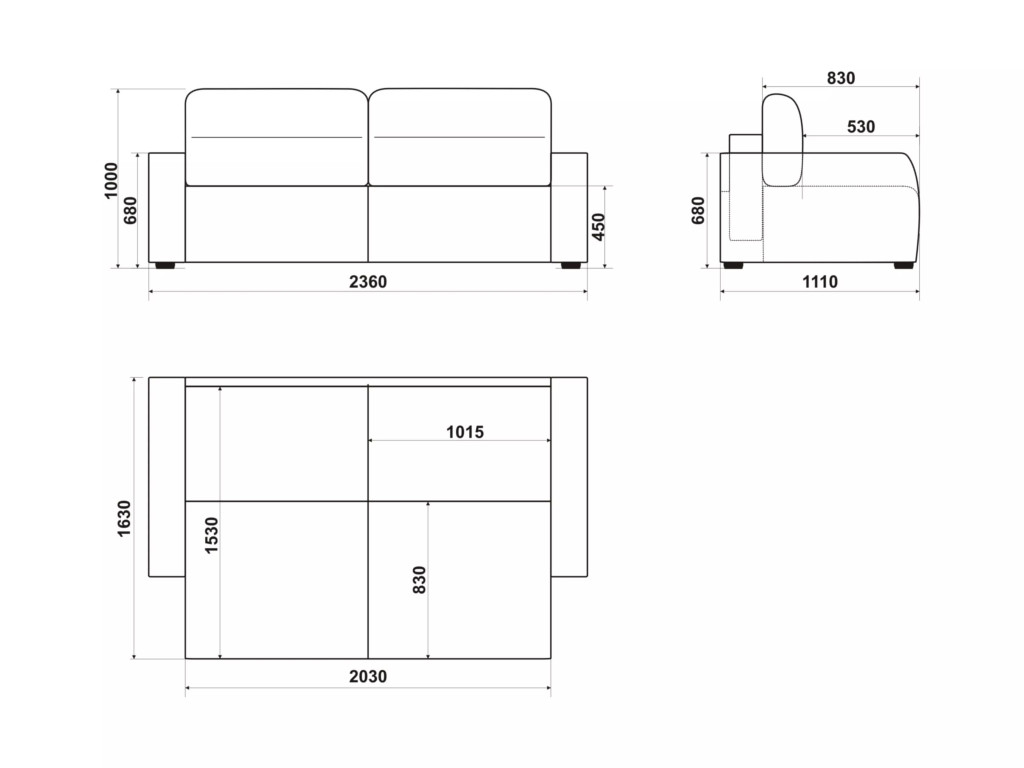 Размеры дивана (мм): 2360*1110*1000