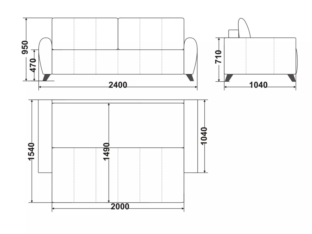 Размеры дивана (мм): 2400*1040*950