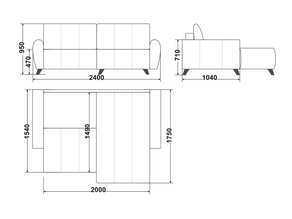 Размеры дивана (мм):  2400*1750*950