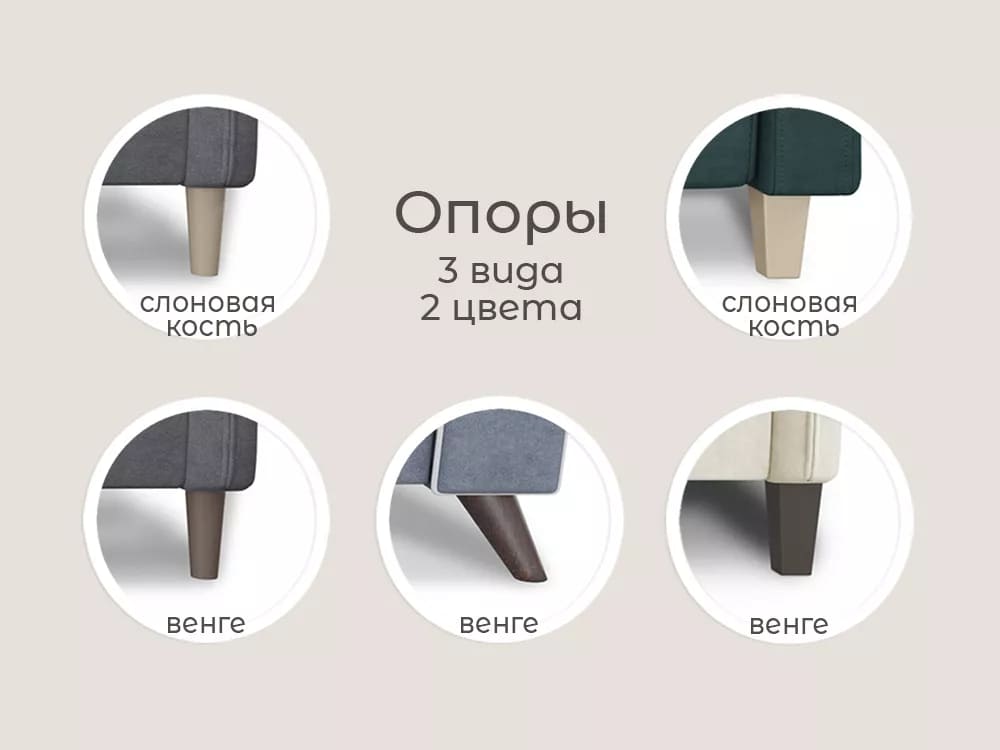 Каркас: выполнен из древесины хвойных пород, фанеры лиственных пород, лам. ДСП и лам. ДВП. В диване короб из ЛДСП, в оттоманке короб отсутствует. Опоры высота 120 мм.