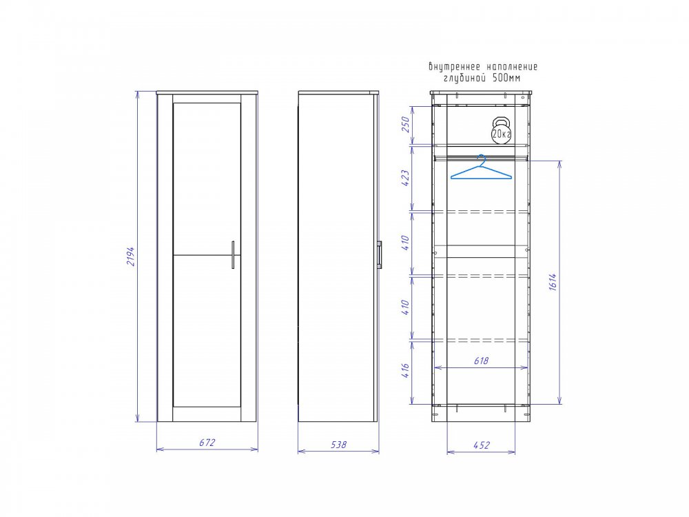 - Шкаф 1-но дверный 2194 Денвер Риббек серый
