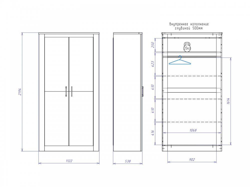 Размер ШхГхВ: 1122*538*2194 мм