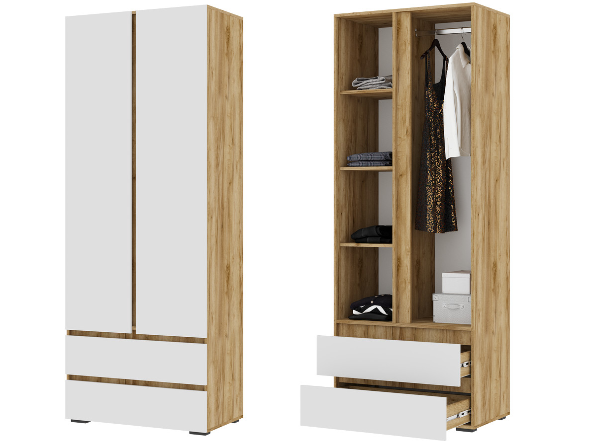 - Шкаф 2х створчатый ШК 01 Хелен Дуб Крафт золотой/Белый шагрень