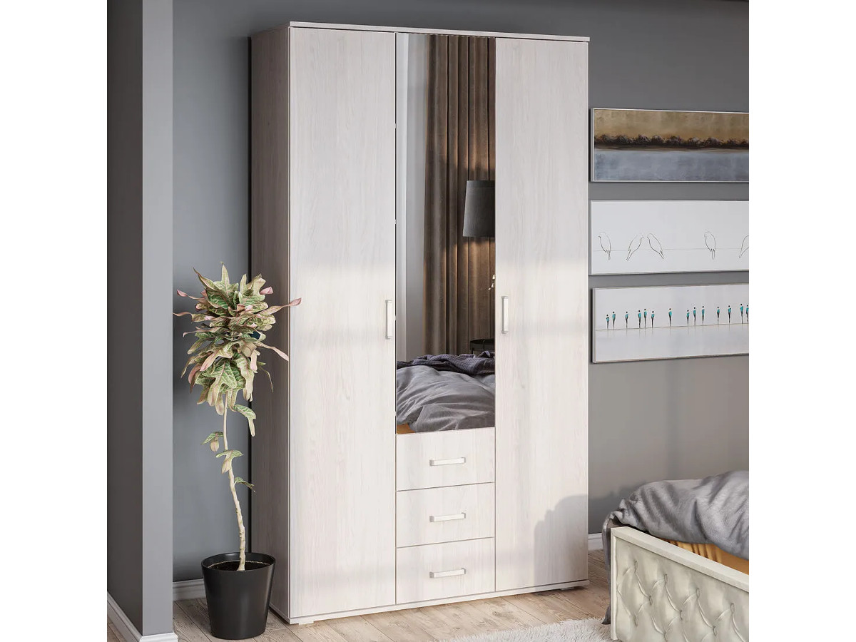 - Шкаф 3-х створчатый Белла Ясень белый