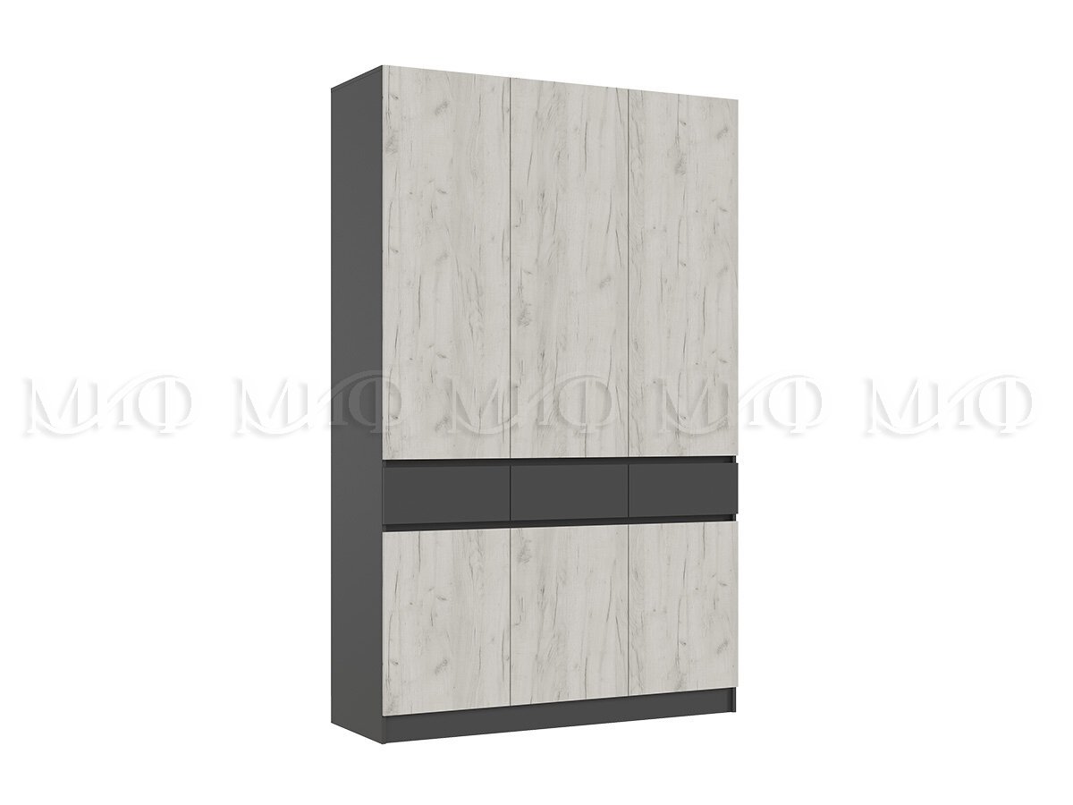 Шкаф 3-х створчатый Роджина Графит/Дуб Крафт Белый