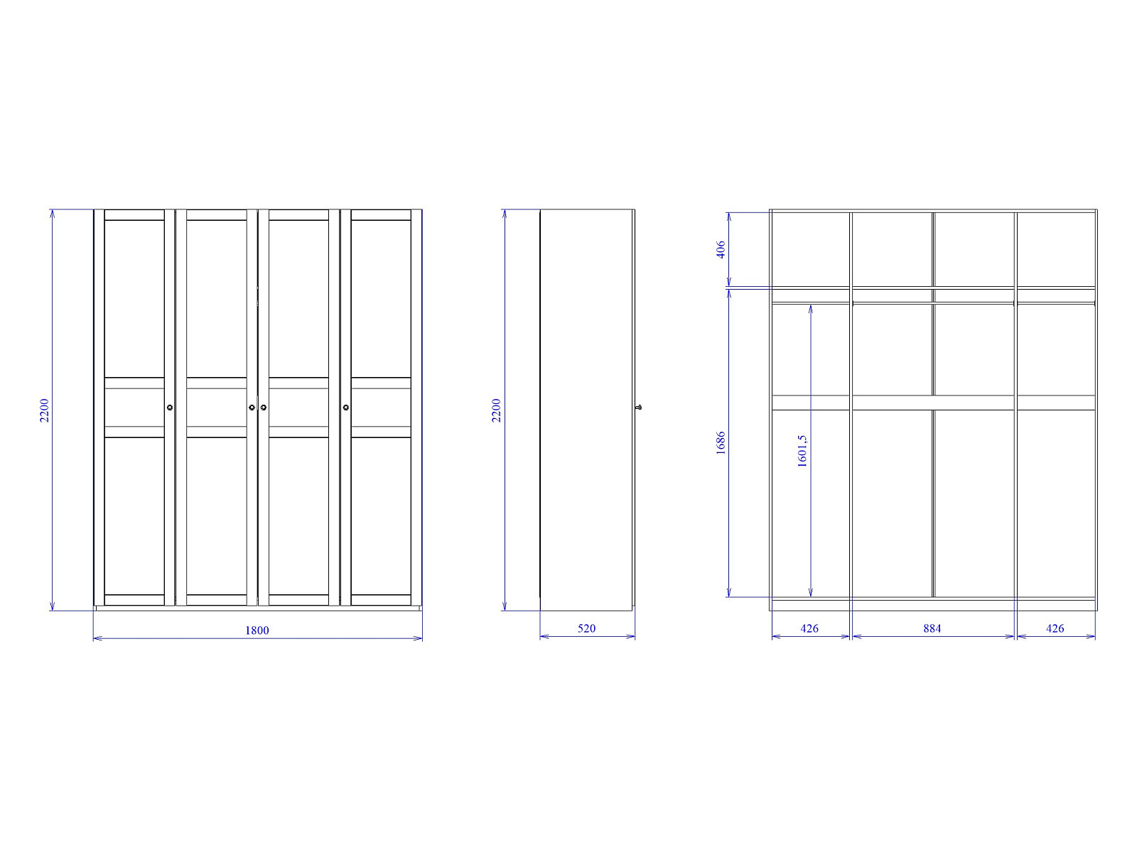 - Высота (мм) 2204