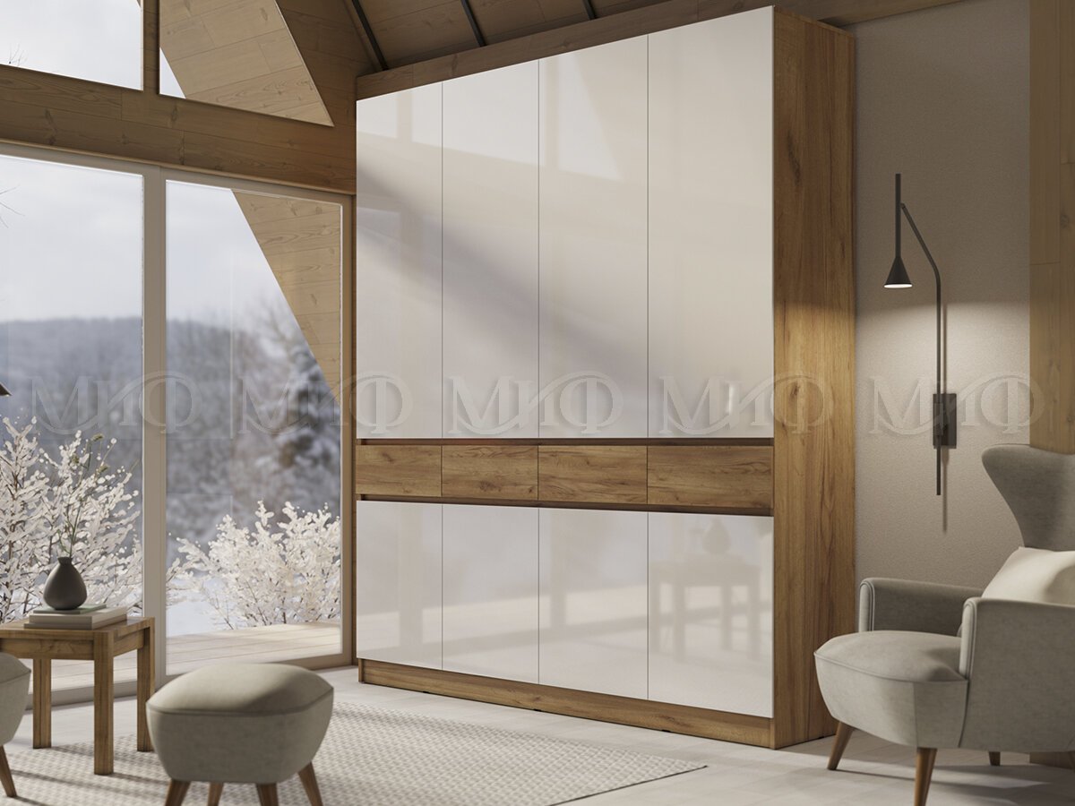 - Шкаф 4-х створчатый Роджина Белый глянец