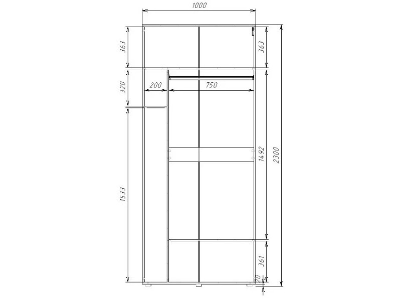 Шкаф бытовой с 1 штангой Гранд ГШБ/1-23-10-33