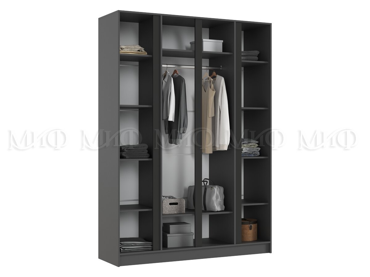 - Шкаф четырехстворчатый Келвин (1600) Графит-вставка черная