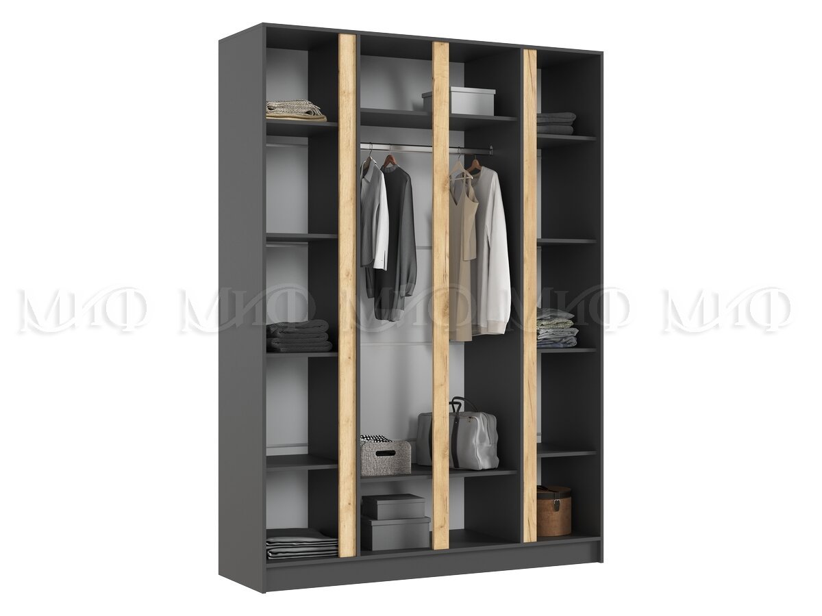 - Шкаф четырехстворчатый Келвин (1600) Графит-вставка дуб крафт