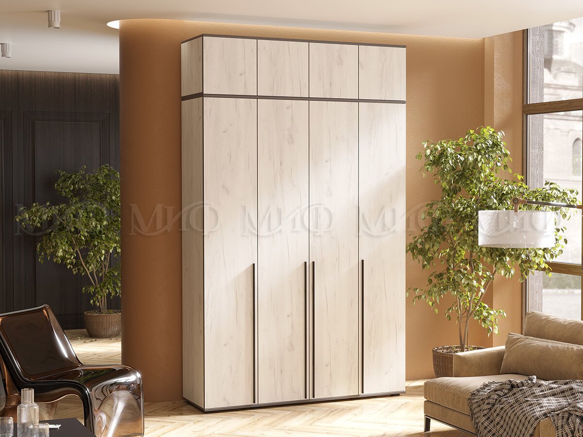 Шкаф четырехстворчатый Норд 1600 с антресолью дуб крафт белый МГ
