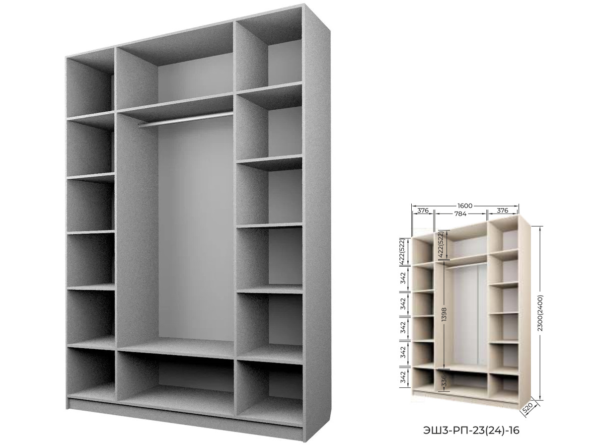 - Шкаф для Одежды Экон ЭШ3-РП-24-16