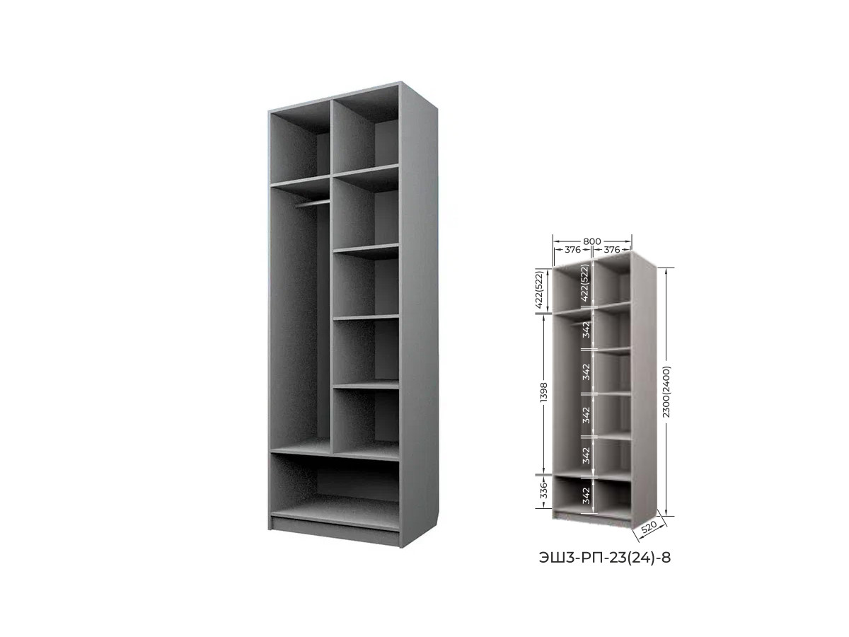 Комплект: ЭШ3-РП-24-8, Шкаф для Одежды + два ЗС-24,Зеркало для шкафов ЭШ 2400 мм