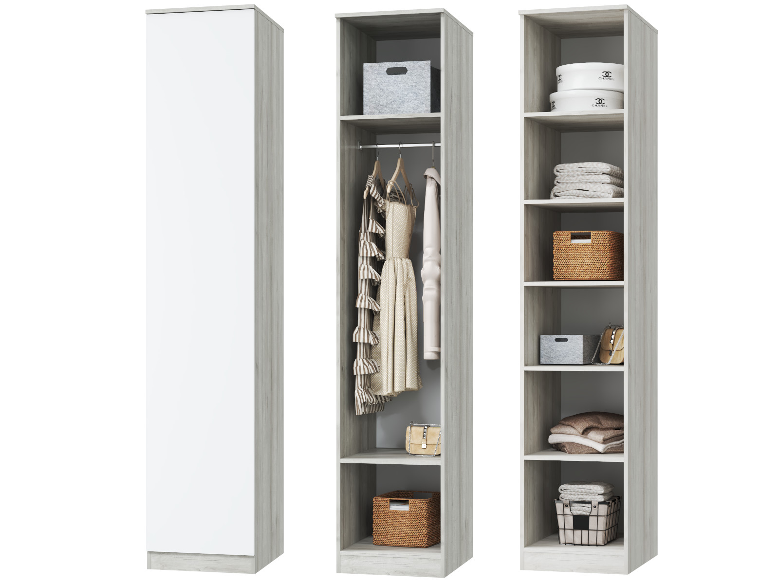 Шкаф для платья и белья однодверный Лори дуб серый, белый