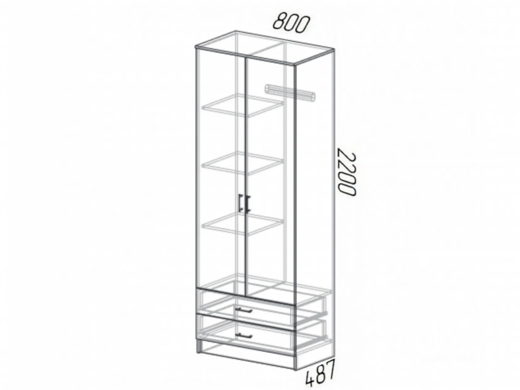 Размер: 800(Ш) Х 2200(В) Х 487(Г) мм