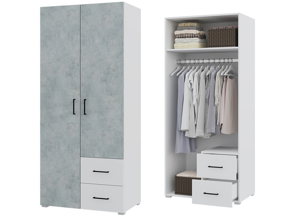 - Шкаф двухстворчатый 2 ящика Victor Белый-Бетон