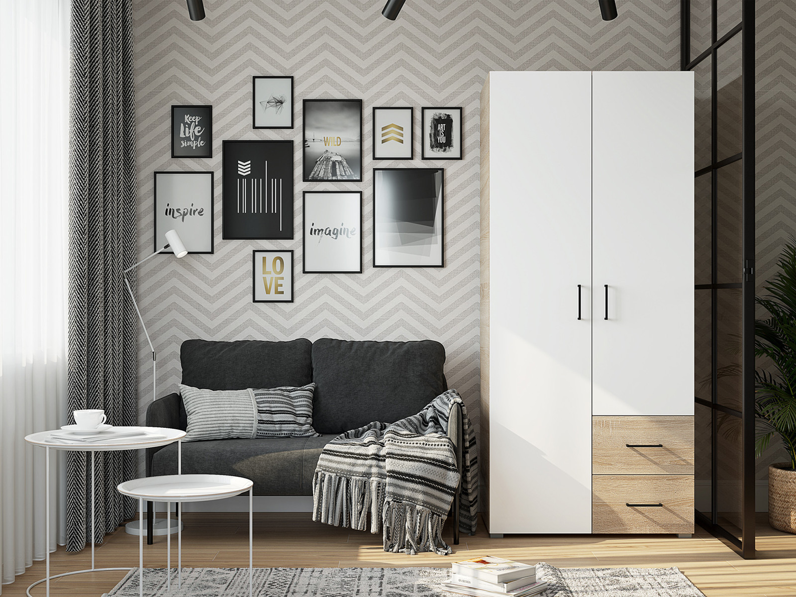 Шкаф двухстворчатый 2 ящика Victor Сонома-Белый