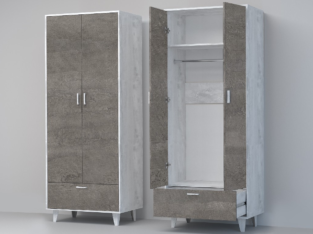 - Шкаф Эго ШК-1 бетон светлый/камень темный на ножках